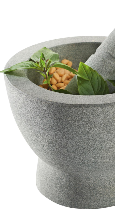 Ten duży granitowy moździerz ma podwójne zastosowanie można go stosować z obu stron, w przypadku niewielkiej ilości przypraw albo do dużej ilości pesto i pasty z ziół. W zestawie ergonomiczny dwustronny tłuczek. 5- letnia gwarancja.
