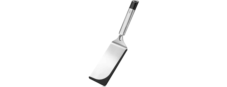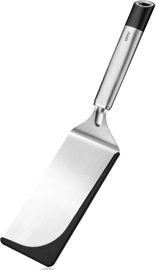 Dzięki ergonomicznie ukształtowanemu kształtowi łopatki odwracanie lub wyjmowanie żywności z patelni nie stanowi problemu. Silikonowa powłoka na spodzie zapobiega zarysowaniu naczyń kuchennych. Zakrzywiony kształt dla praktycznej obsługi, odporność na temperaturę do 250°C. Ergonomicznie ukształtowany uchwyt. Można myć w zmywarce.
