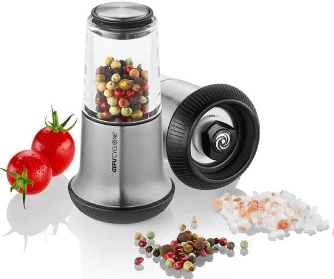 Młynek do soli lub pieprzu X-Plosion®, w kolorze stalowym z wysokiej jakości stali nierdzewnej, tworzywa sztucznego i aluminium. Wyposażony w mechanizm mielący Cyclone®, miażdży kryształki soli lub pieprzu szybko, łatwo i skutecznie. 16-sto stopniowy sposób mielenia-od bardzo drobnego do bardzo grubego, gwarantuję pełny smak i aromat mielonej przyprawy. Młynek wyposażony jest w szeroki pojemnik do napełniania oraz szczelną pokrywę gwarantującą ochronę przed wilgocią. Pojemnik można myć w zmywarce.
