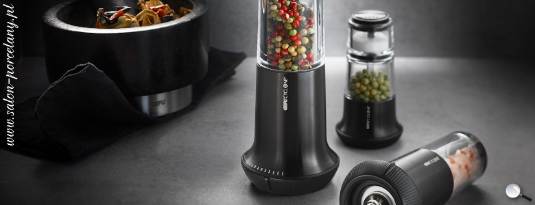 Młynek do soli lub pieprzu X-Plosion®, w kolorze czarnym z wysokiej jakości stali nierdzewnej, tworzywa sztucznego i aluminium. Wyposażony w mechanizm mielący Cyclone®, miażdży kryształki soli lub pieprzu szybko, łatwo i skutecznie. 16-sto stopniowy sposób mielenia-od bardzo drobnego do bardzo grubego, gwarantuję pełny smak i aromat mielonej przyprawy. Młynek wyposażony jest w szeroki pojemnik do napełniania oraz szczelną pokrywę gwarantującą ochronę przed wilgocią. Pojemnik można myć w zmywarce.