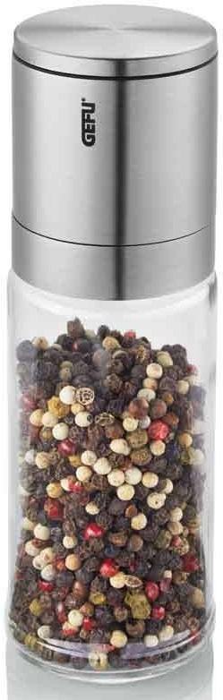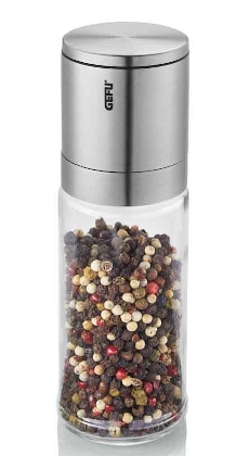 Młynek do soli lub pieprzu Lamola. Wykonany z najwyższej jakości stali nierdzewnej, szkła i tworzywa sztucznego. Regulowany mechanizm mielący wykonany z ceramiki gwarantuję dokładne miażdżenie przypraw. Przyprawy w tym młynku można zmielić nie zdejmując nakładki, zapobiegamy w ten sposób przyklejania się np.soli do młynka podczas mielenia nad gorącym garnkiem.