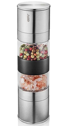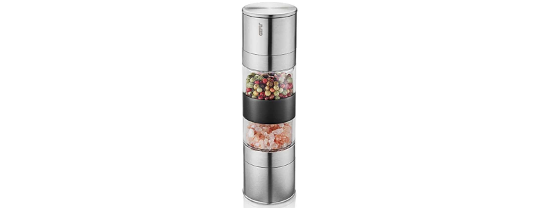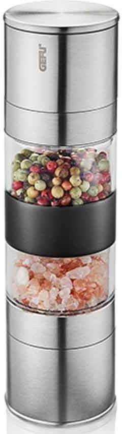 Podwójny młynek do soli i pieprzu z ceramicznych mechanizmem mielącym. Wykonany z najwyższej jakości stali nierdzewnej i tworzywa sztucznego. Mały i elegancki może być ciekawą propozycją na niezobowiązujący upominek.