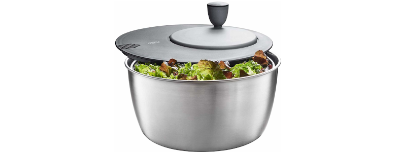 Dzięki wirówce ROTARE mokre liście sałaty czy też sałaty lodowej w mgnieniu oka zmienią się w suche i chrupiące. Zestaw składa się z 3 części: miski, wkładki sitowej, pokrywki, prosta obsługa, wylewka zintegrowana z pokrywką, pojemność: 3 l, wysokiej jakości stal nierdzewna/ PP/ ABS, produkt nadaje się do mycia w zmywarce, 5- letnia gwarancja