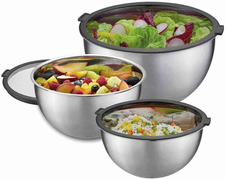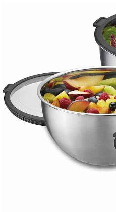 Wszystkie misy wyposażone są w hermetyczne, przeźroczyste pokrywy z wysokiej jakości tworzywa sztucznego. Można w nich przechowywać gotowe dania, świeże owoce, warzywa oraz suche przekąski. Nie pozostawiają zapachów a przechowywane w nich produkty pozostają dłużej. Każda misa posiada od wewnętrznej strony skalę napełnienia.