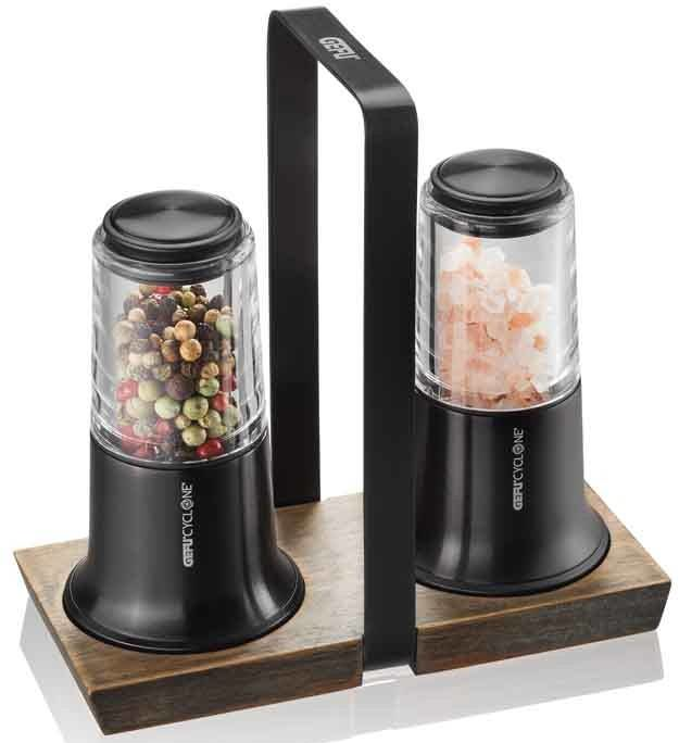 Młynki z wysokiej jakości stali nierdzewnej wyposażone w ceramiczne mechanizmy, w których można ustawić stopień mielenia od bardzo drobnego do bardzo grubego. Posiadają łatwe do napełnienia pojemniki, hermetyczne pokrywy zapewniają świeży smak i zapach przypraw oraz chronią zawartość przed wilgocią. Uzupełnieniem zestawu jest podstawa z wysokiej jakości drewna akacjowego ze stalowym, wygodnym uchwytem. Zestaw X-Plosion® świetnie nadaję się na prezent.