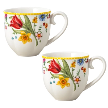 Seria Spring Awakening niewątpliwie przyciąga wzrok intensywnymi kolorami oraz dekorami kwiatowymi w postaci tulipanów, żonkili czy dzwonków. Całość dopełnia żółta obwódka, która nadaje nieco wielkanocnego designu. Na uwagę zasługuje także falowany kształt porcelany Spring Awakening.